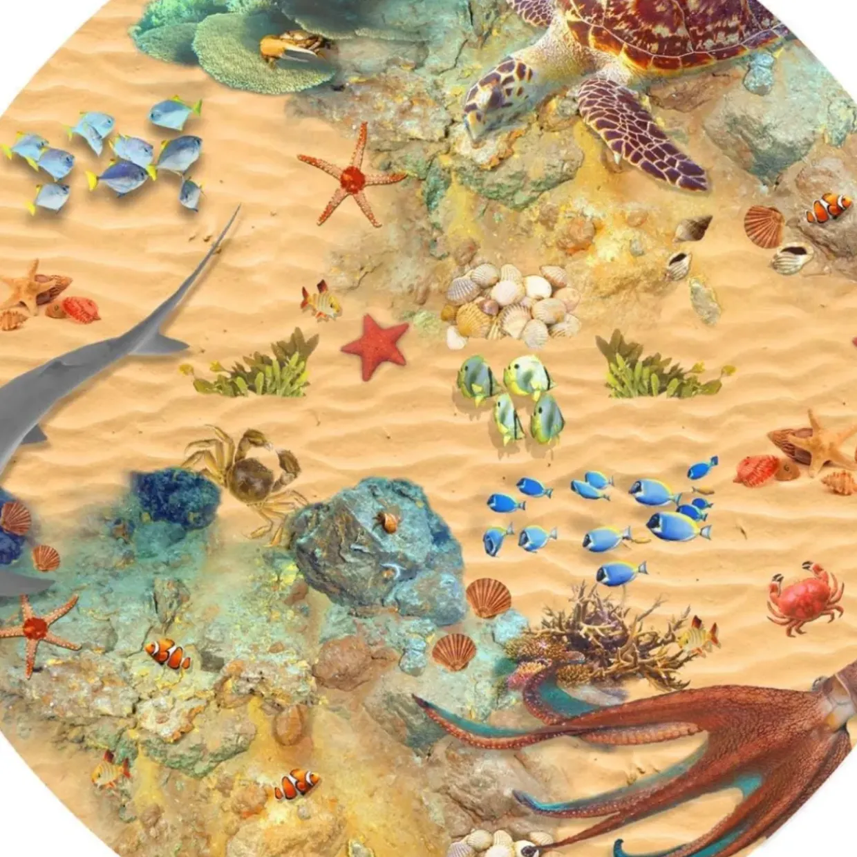 Durability and Safety Assured: Crafted from premium, child-safe materials, our Tuff Tray Mat ensures durability, withstanding the excitement of little adventurers. Worried about mess? Wipe clean with ease! The Sea Floor Mat offers a safe, waterproof, and reliable play environment, allowing children to freely delve into their oceanic fantasies.