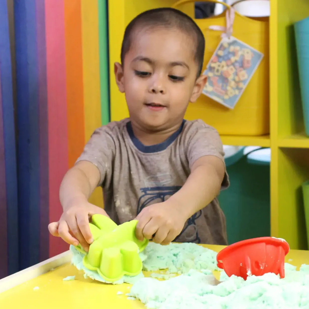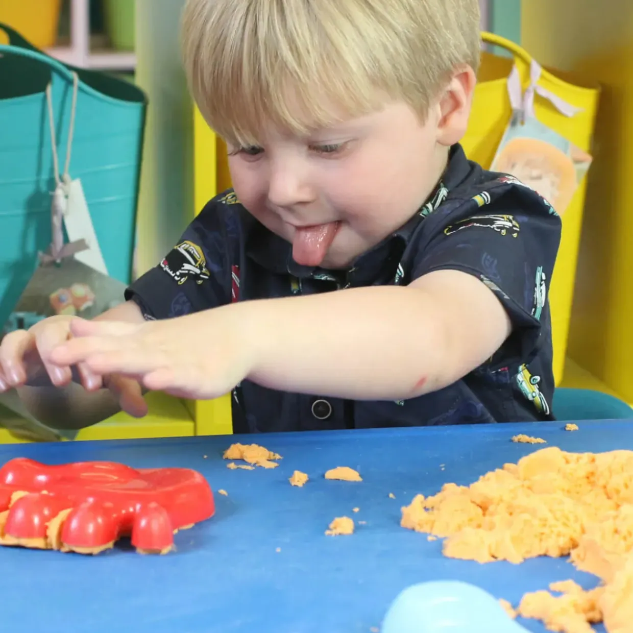 Shape the sand into different forms and have kids sort them by colour or type to reinforce key early-learning concepts.