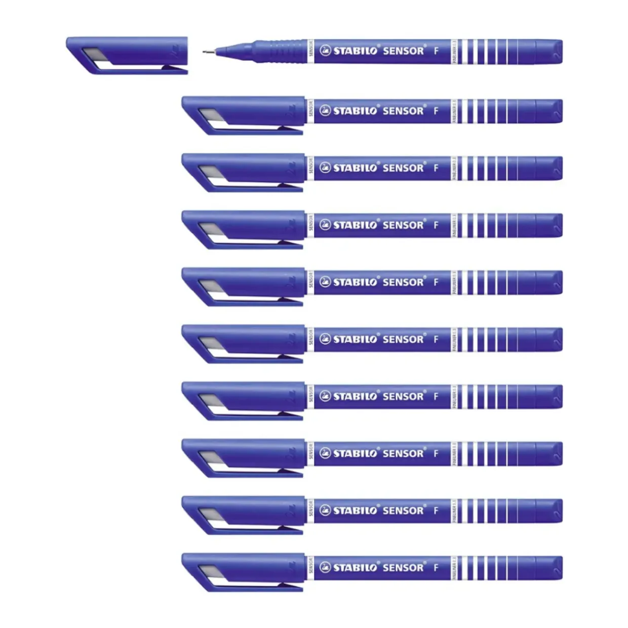 STABILO Sensor F-Tip Fineliner Pens Blue – Pack of 10